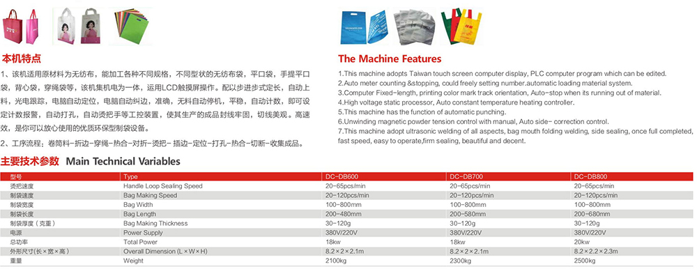 DC-DB600-800無(wú)紡布平口燙把一體制袋機(jī)